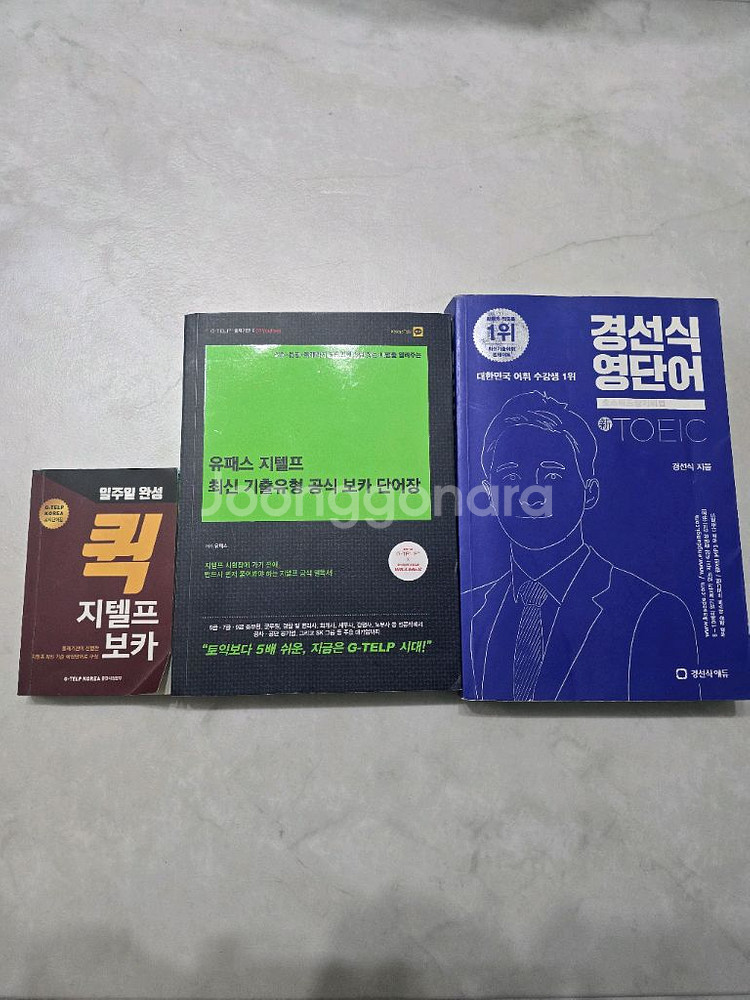강성태영단어,영독해,영문법,경선식영단어,경선식영숙어,이유정 지텔프 기출문제,토익,탭스,토플,편입영어 문제집 팝니다. 경선식영단어(토익)-8천원 유패스지텔프단어장-8천원 퀵지텔프보카 《판매완료》 이유정지텔프(단어편)-9천원 경선식영숙어(수능)- 《판매완료》 지텔프 기출문제집(6회분) 《판매완료》 경선식영단어(공편토)-2만원 실전지텔프2급 《판매완료》 퀵지텔프 최신기출 모의고사-1.2만원 강성태 영독해(속독법)-9천원 강성태 영문법(필수편)-9천원 강성태 영단어(어원편)-9천원 약간의 필기흔적정도 있습니다. 전체적으로 깨끗합니다. 예민한분들은 신중한 구입 부탁드려요~