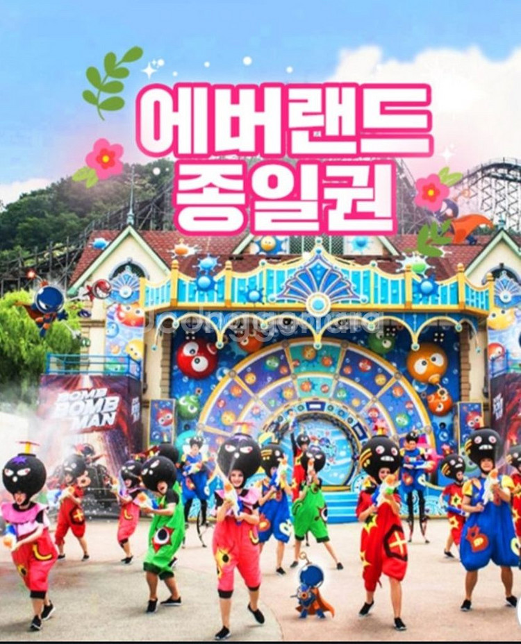 💕 에버랜드 자유이용권 종일권 판매 🧡 A구간 +츄러스 : 35,000원 (~26.03.31까지) 💛 B구간 : 29,900원 (~26.03.19까지) ✔️ 일정 확정된 상태라면 미리 구매 요청 주시는 것을 추천드려요. [공통 안내] ✔️ 대인/소인 모두 이용 가능 (만 36개월 이상은 동일 요금) ✔️ 사용방법: 보내드리는 쿠폰번호로 에버랜드 App에 등록 후 에버랜드 정문에서 제시 후 바로 입장 ✔️주문후엔 일정 변경 및 취소 어려우니 신중하게 결정 부탁드려요🙏