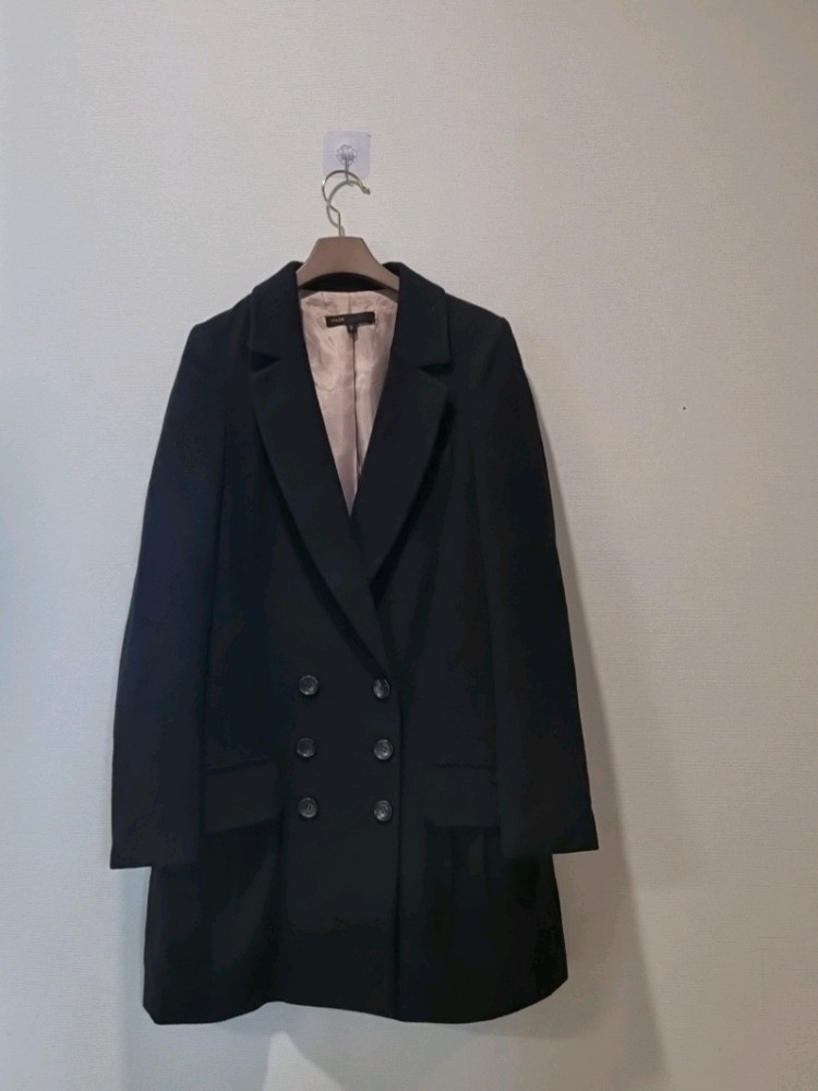 마쥬 더블 코트입니다. 울90% 캐시미어10% 소재로 부드럽고 따뜻합니다. 기본 블랙 컬러에 더블버튼 디자인이라 깔끔하게 입기 좋은 코트입니다. 가슴단면 45 총장 83 0사이즈 전체적으로 상태 좋습니다.