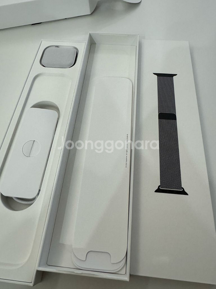애플워치 판매합니다. • 모델 : 애플워치8 45mm • 스테인리스 그래파이트 • 셀룰러 모델 • 밀레니즈 루프 밴드 • 정품 박스 및 구성품 그대로 배터리 성능 **84%**입니다. 정상 작동하며 초기화 후 판매합니다. 상태 깨끗합니다. 직거래 가능하며 쿨거래 시 약간의 네고 가능합니다.