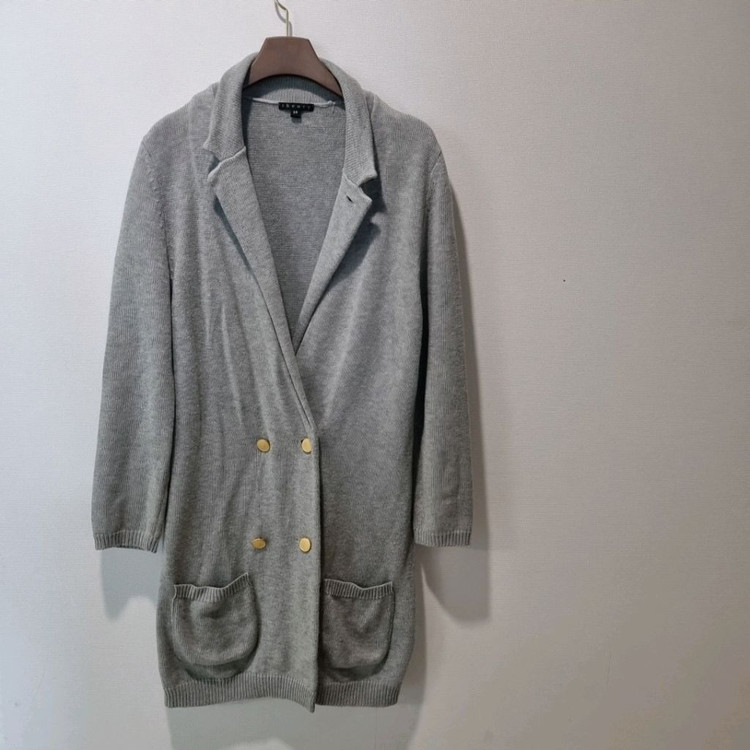 띠어리 그레이 니트 롱가디건 판매해요. 차분한 그레이 컬러에 금장 버튼 디테일로 깔끔하고 고급스러운 느낌이에요. 자켓처럼 단정하게 걸치기 좋고, 롱한 기장이라 슬랙스나 데님, 원피스 위에도 예쁘게 매치돼요. 양쪽 포켓 있어 실용적이고, 유행 크게 타지 않는 기본 디자인이라 활용도 좋아요. 사이즈 S 가슴단면 47 총장 84 혼용률 면 75 캐시미어 25 사용감 많지 않고 전체적으로 깔끔한 편이에요.