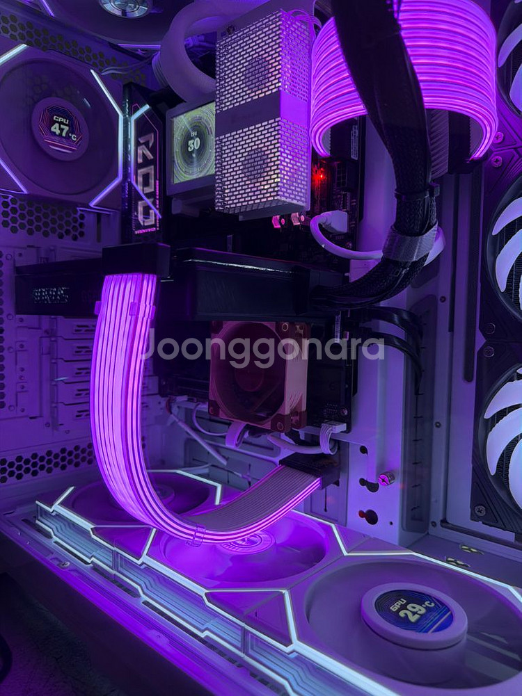 GPU: Gigabyte 5090 워터포스 CPU: Intel Core Ultra 9 285K (Z890 플랫폼 최상위 모델) MB: ASUS ROG MAXIMUS Z890 HERO (전원부 및 확장성 끝판왕) RAM:OLOY CL32 6400MHZ DDR5 64GB (32GB x 2) 고클럭 셋팅 SSD: 총 4TB 990 PRO 4TB PSU: Lian Li EDGE 1300W (ATX 3.1 지원, 안정적 전력 공급) CASE: Lian Li O11D EVO XL (데스크테리어의 정점) FAN/CABLE: 리안리 유니팬 TL 7개 + 스트리머 플러스 (풀 셋팅) RAM 쿨러(작은팬 2개 달린거) 서비스~ CPU LIANLI RGB CABLE LIANLI HYDROSHIFT NON FAN 수냉 지금 위 사양으로 맞추면 1500이상은 들어요~ RAM GPU 가격 더 오를거라 예상합니다~ 상태: 2026년형 최신 부품들로 구성. 단순 조립 후 벤치마크 및 작업용으로만 사용.CPU GPU MB 부품 정품 박스 보유 중. 리안리 풀 패키지로 감성 및 쿨링 성능 극대화. [거래 조건] 장소: [본인의 거주지나 작업실 위치] (본체 무게와 가격상 직접 오셔서 작동 확인 후 수령 권장) 지역은 일산입니다. OIO-9092-8037 문자주세요^^