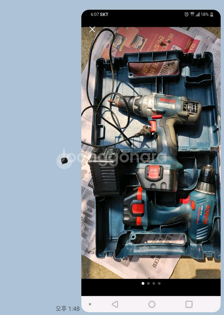 개인정보(거래정보)를 주고받는 행위는 사기에 노출될 수 있으므로 즉시 중고나라로 신고해 주세요보쉬 전동드릴 2개입니다 1단 2단되고 작동 잘 됩니다 일괄판매 합니다 구성품은 사진상 모두입니다