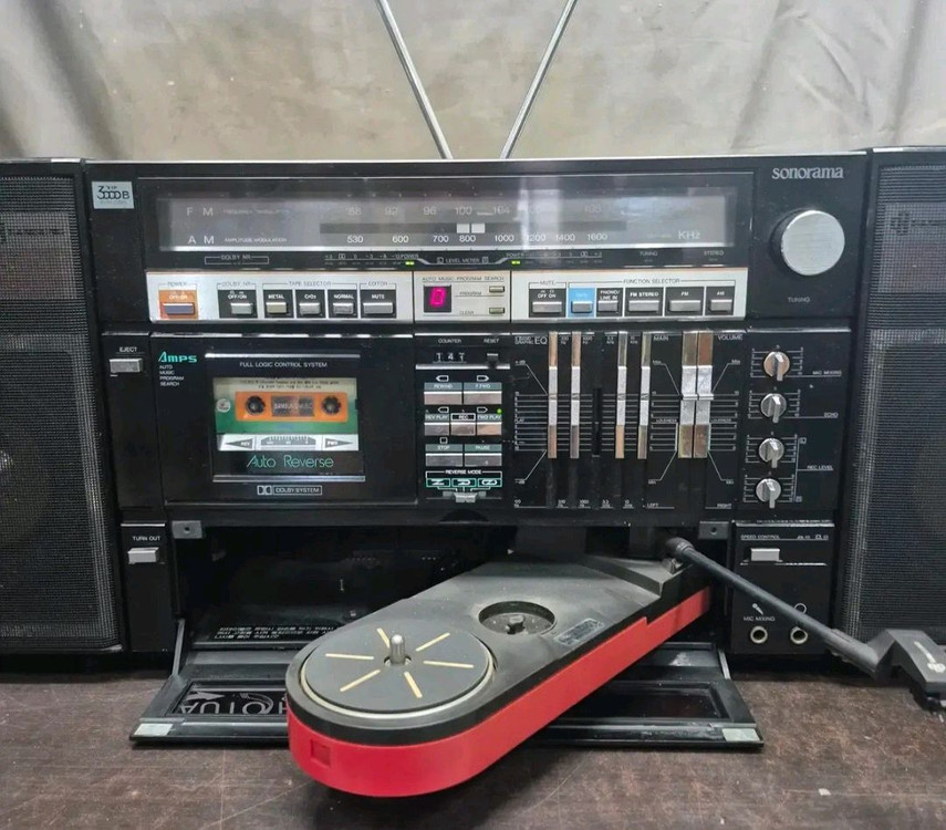 [추억의레트로] 삼성 소노라마 FM/카세트(오토리버스)/턴테이블 3콤보 붐박스 정상동작품 - 모델명 : VIP-3000B - FM 기능 : 모노 정상동작 - 카세트 기능 : 오토리버스 양방향 정상동작 - 턴테이블 기능 : 33회전/45회전 정상동작 사이즈 : 78*29*18(가로*높이*폭) 전원 220V 스피커 분리 가능 황학동 S전자에서 수리 및 복원하여 카세트 오토리버스 및 턴테이블 기능 정확히 동작합니다. 관심 있으신 분 톡 주세요!!!