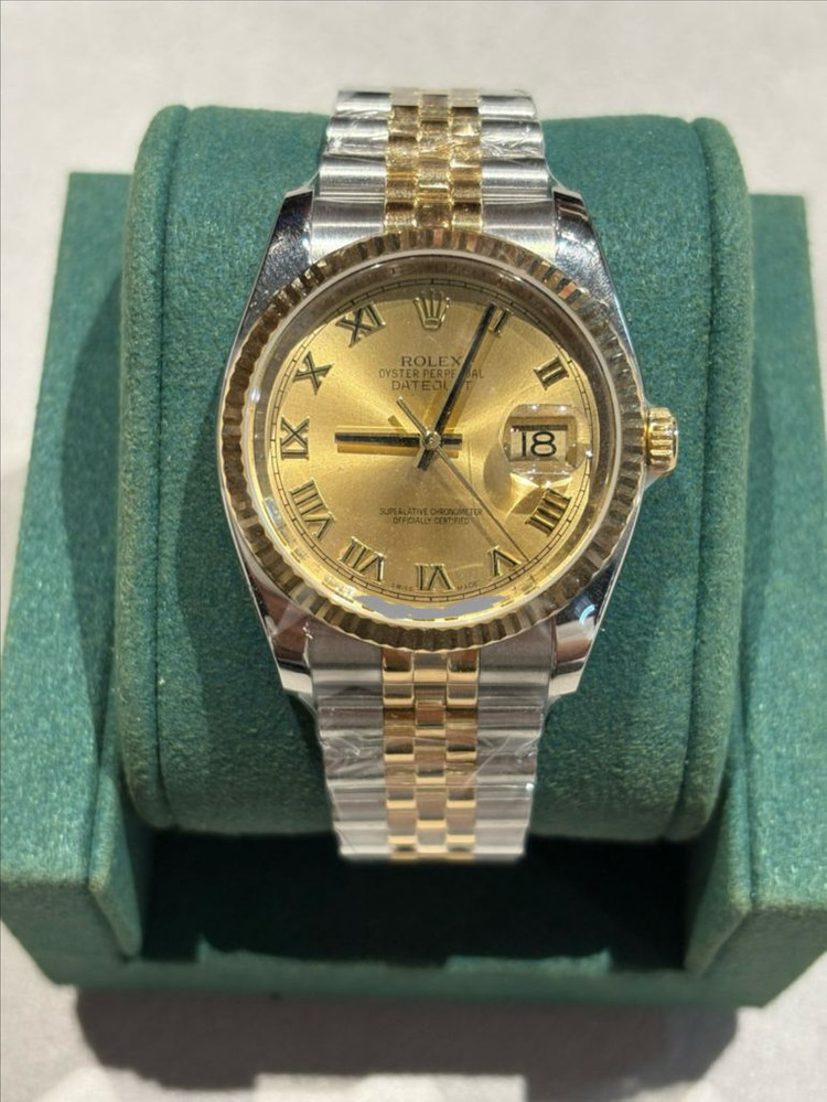 중고 롤렉스 데이트저스트 36 옐로골드 콤비 샴페인 로만 116233 - 랜덤 36 mm 옐로골드 콤비(쥬빌리), 샴페인 다이얼, 로만 인덱스 브랜드 보증서, 정품 박스 다 없습니다. 폴리싱 했고 마디 갯수 다 있습니다. 유리는 오리지널과 동일한 소재(사파이어 크리스탈)로 제작되었습니다. 서울, 부산 직거래 하고 외 지역도 가능합니다.