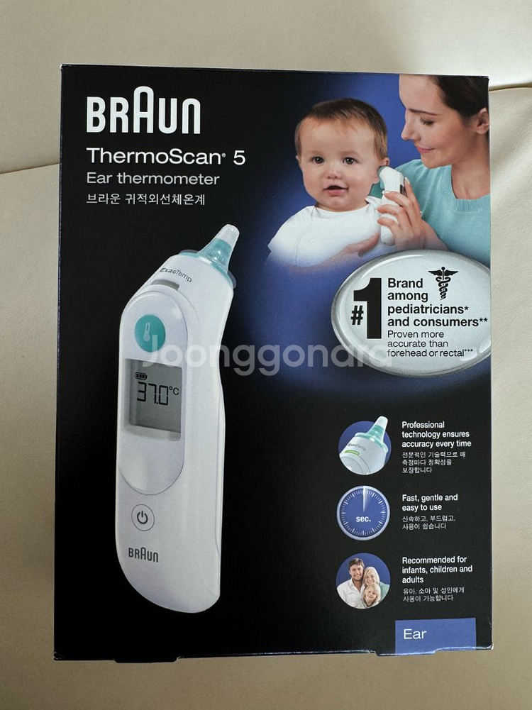 귀 체온계 새 제품이에요. 박스 포장 상태 그대로 미개봉 상품입니다. 아기부터 성인까지 사용 가능한 정확한 체온 측정기예요. 택배거래시 착불