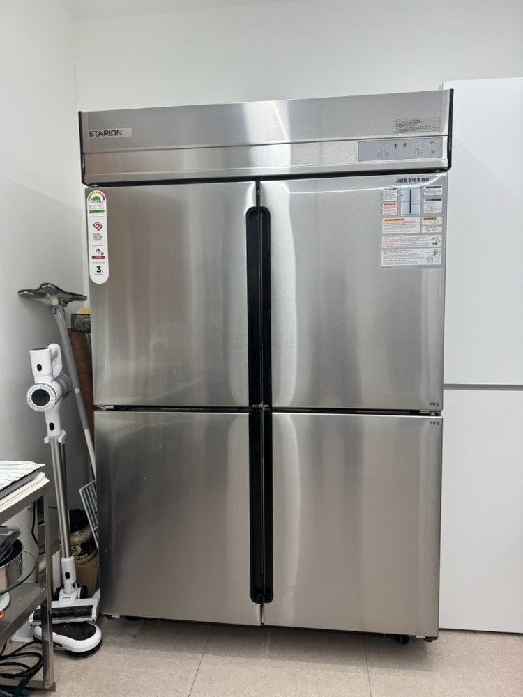 업소용 4도어 냉장고입니다. 스테인리스 소재로 깔끔하고 고급스러운 디자인이에요. 상태 양호하며 업소나 대용량 가정에서 사용하기 좋습니다. STARION 업소용 45박스 간냉식 1/2 수직냉장냉동 2024년 8월 구입 실사용 1년 미만. 선반은 따로 구입하여 10개 있습니다. - 에너지 소비 효율 1등급 제품입니다 - 컴프레서 무상보증 3년입니다 - 모델명은 SR*R45S5입니다 - 연간 소비전력량은 62.0 kWh/월입니다 7호선 상동역 비잔티움 상동역 직접 가져가셔야 합니다. 이번주 안으로 구입하시면 가격 조금 깎아드려요~