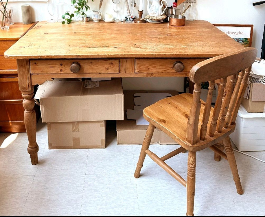 영국에서 건너온 빈티지 테이블, 빈티지 의자 판매합니다. 테이블은 빈티지 판매 전문점(더스테이블)에서 직접 구매했습니다. 구매가는 200만원입니다. Old vintagae pine table with 2 drawers - Farnborough, England 잉글랜드 판버러(70년) 의자는 이태원 빈티지샵에서 구매했습니다. 구매가 20만원입니다. 테이블, 의자 일괄 100만원에 드릴게요! 의자는 일반 차량에도 가져갈 수 있으나 테이블은 사이즈가 꽤 나갑니다. 사이즈 꼭 확인해주세요! 010 2004 팔구53 - 전화는 어려울수 있으니 문자주세요!