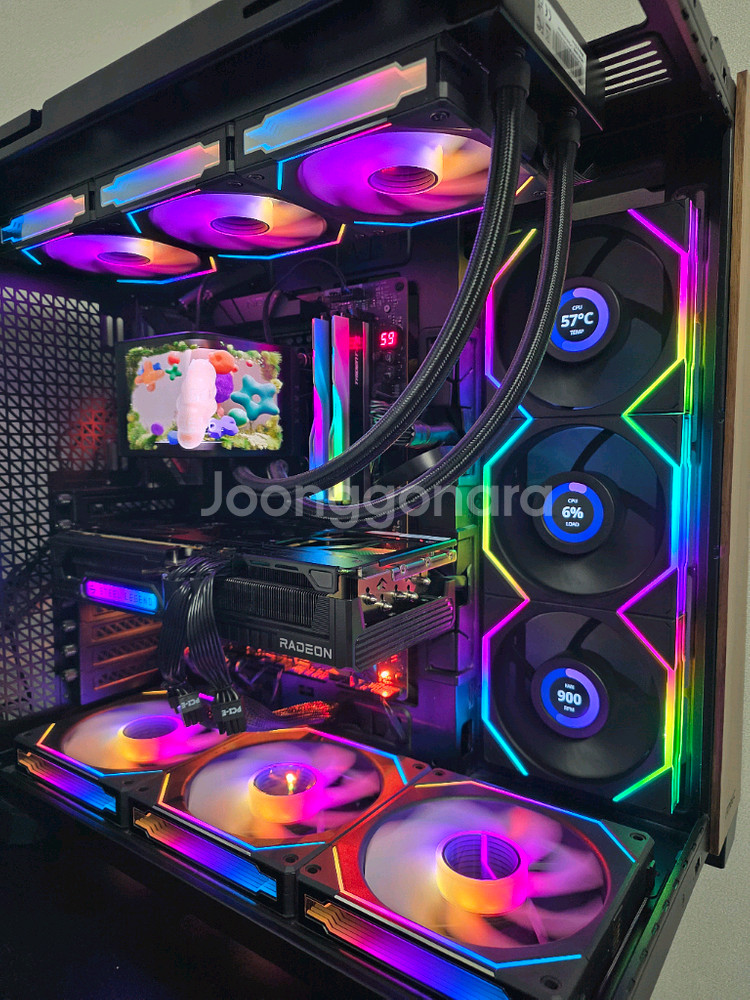 - CPU: 라이젠 9950X as 2년 [9800x3d 로 원하시면 교체가능 미개봉 보유중] - 쿨러 : 트라익스 360 파노라마 as 5년 [파노라마 디스플레이 1년] - GPU: 스틸레전드 9070 XT as 2년 4개월 - 마더보드: ASRock X870E Nova WiFi as2년 - RAM: G.Skill DDR5 16x2 실버패키지 라이프타임 워런티 - 저장소: 하이닉스 P41 2tb as 4년 - 파워 : 안텍 1000w 골드 as9년 - 케이스 : 안텍 c8 우드 - 팬 : 리안리 lcd 3팩 + 리안리 sl 6팩 비흡연 동물 안키웁니다 청소 싹해놓고 벤치마크 3dmark 몇번씩 돌려보고 충분히 테스트후 판매합니다 as 기간은 제조년월로 되는 정품들이며 적어놓은 개월 수와 비슷합니다. 쓰시다가 고장이 나도 몇년 동안은 as 받으시면서 쓰실수 있습니다. 박스는 원하시면 드리구요 [박스가 없어도 as는 되지만 택배 보낼때 좋아요] 쿨거래시 무게와 금액 때문에 가져다드립니다 노쇼 방지로 계약금 5만원 받구요. 작업 게임 둘다 잘되는 pc입니다 게임방송 주식 디자인 유투브 편집 등등 아이온2도 가끔 해보지만 잘됩니다.