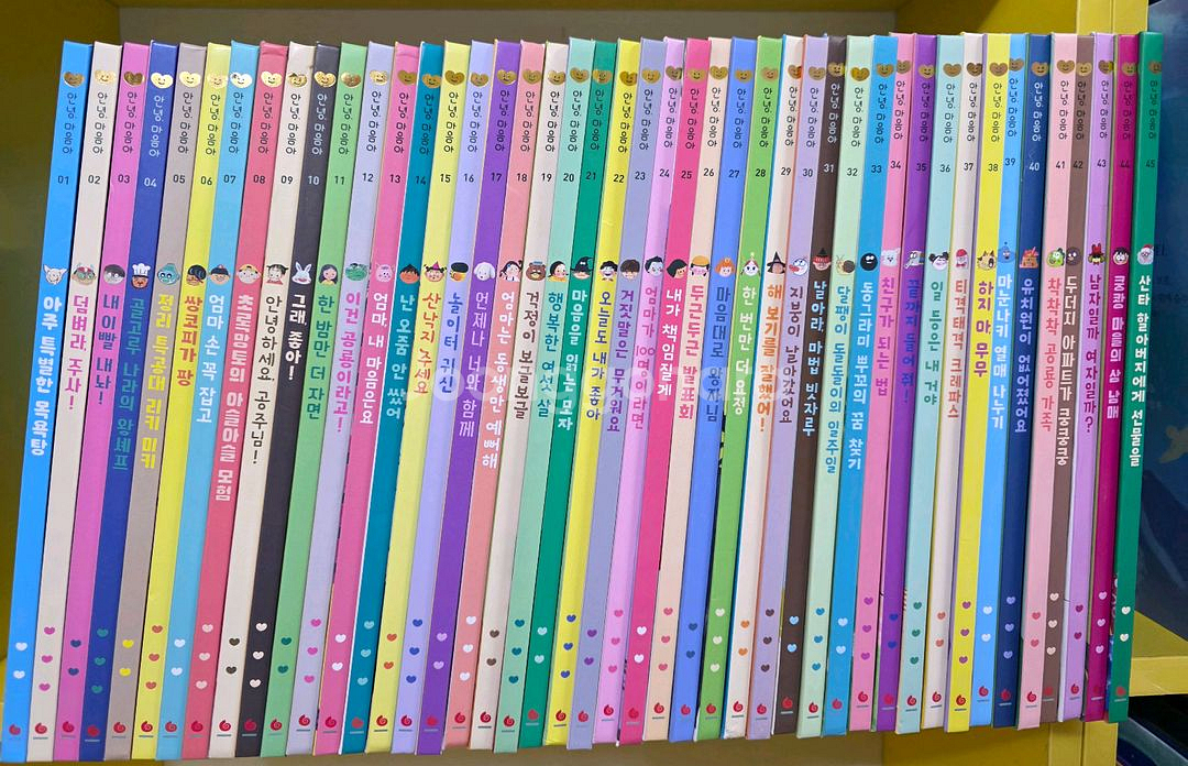 본책45권.내마음이 궁금해요.스티커북.감정포스터 전체적으로 본문내용 깨끗하구요.1권 뒷부록 줄긋기했어요. 내마음이 궁금해요 몇장 물묻은 흔적있네요 노원구 직거래가능 택배가능