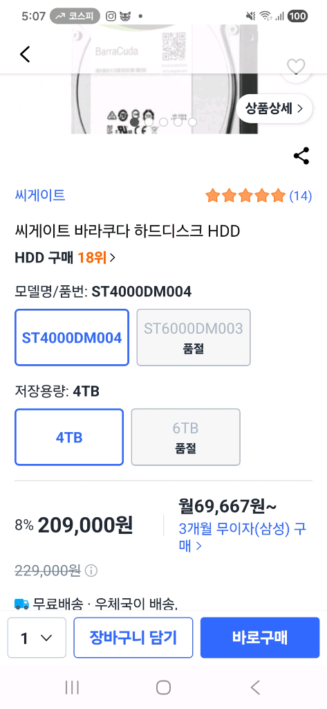 ST4000DM004 4TB SATA3 HDD 입니다. 포맷 완료 했고 동작 잘 됩니다. SATA 케이블 없어요 택배비는 물건 무게 등에 따라 변동될 수 있으며 발생 비용 추가로 주셔야 합니다. 직거래 장소는 갈산 U1 센터, 부개역 근방입니다. 구매 내역 따로 없으며 중고 물품 거래 특성 상 단순 변심으로 인한 교환/환불 어렵습니다.