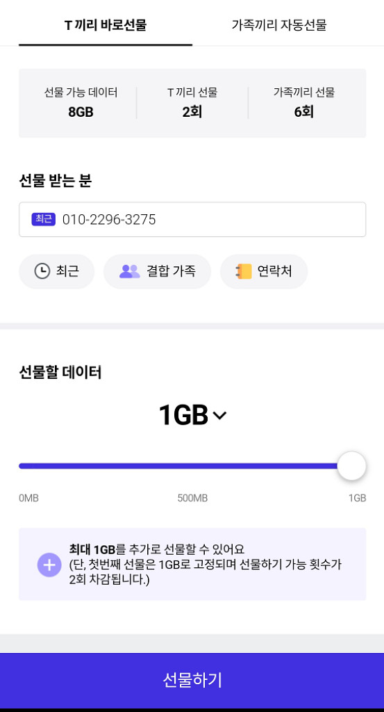 skt 데이터 총 2gb 있습니다