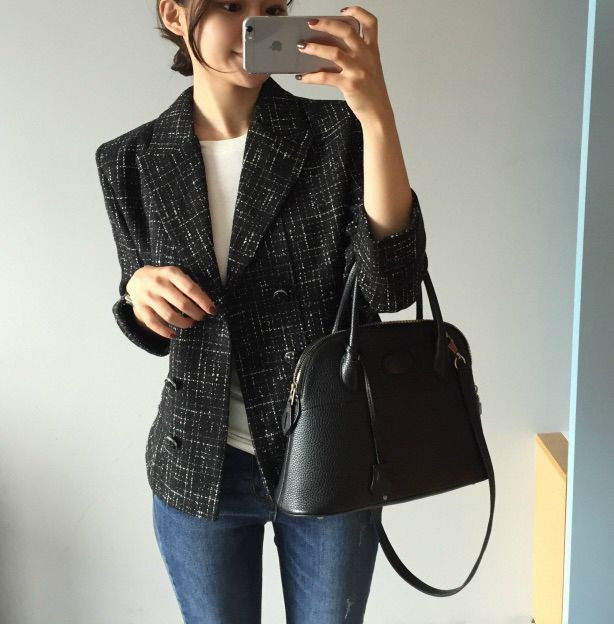 블랙 트위드 자켓