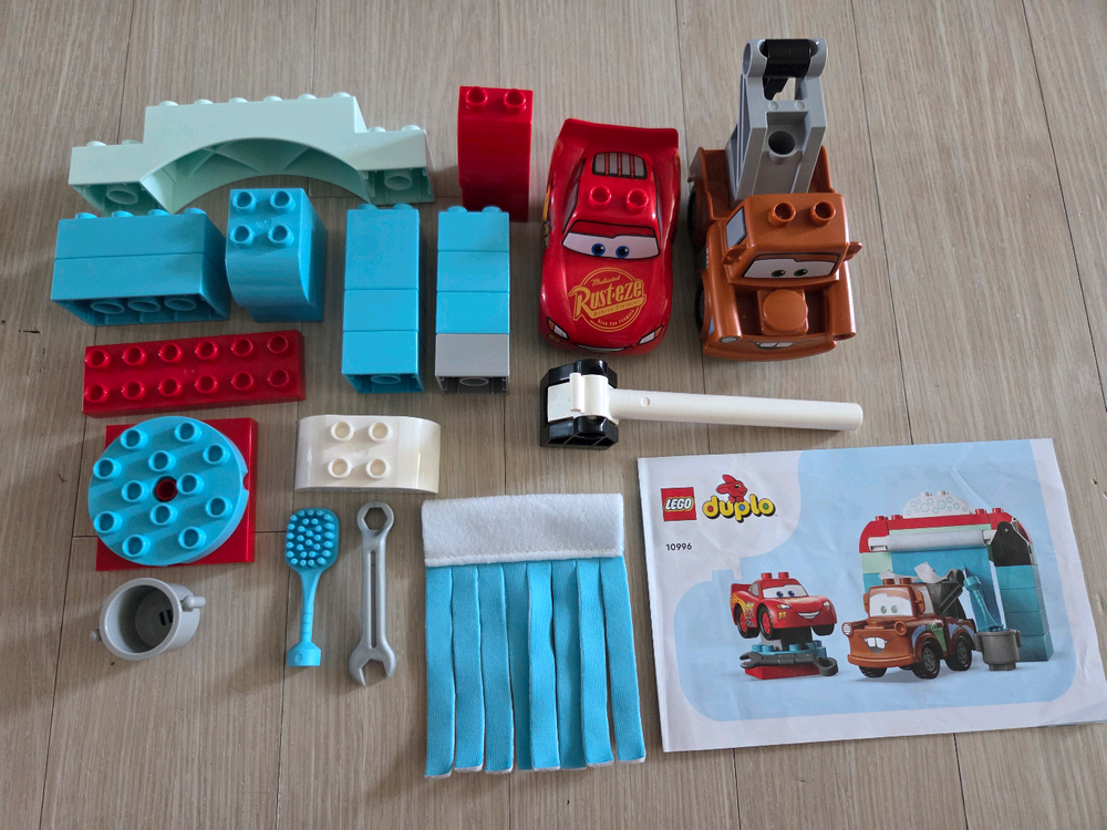 듀플로 10996 맥퀸과 메이터 제품입니다. 조립 설명서 포함이며, 빠진 블럭은 없습니다. 문의 없으시면 바로 안전결제해주시면 됩니다!