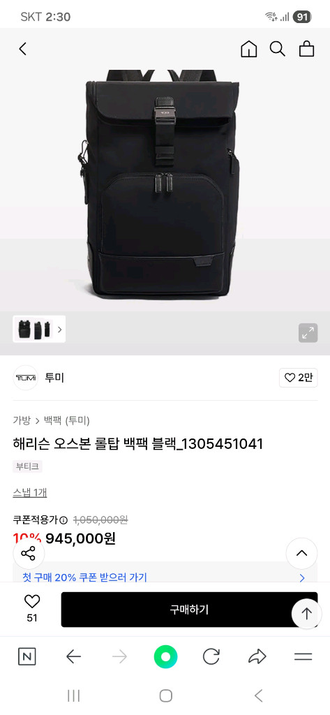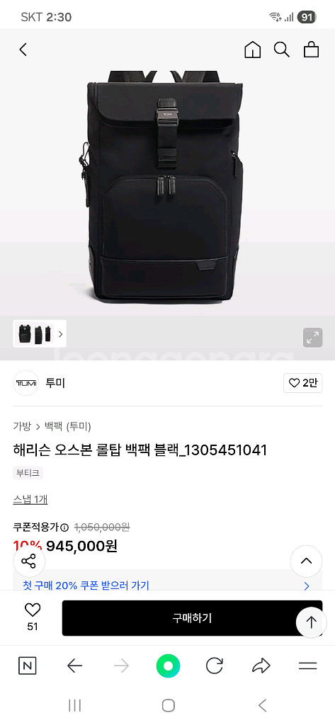 투미 오스본 롤탑 백팩
