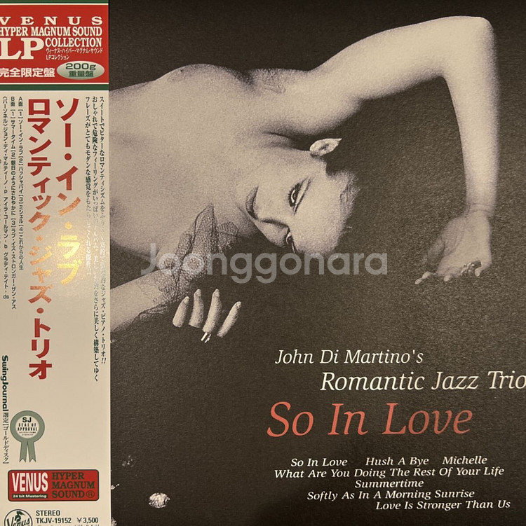 미개봉 [수입] John Di Martino's Romantic Jazz Trio – So In Love 고음질 24 Bit Hyper Magnum 200G 한정반 LP 수입 고음질 VENUS 24 Bit Hyper Magnum 200G 한정반 LP 개봉 겉비닐 교체 신품. 사이드 라벨 포함. Cover : MINT / Vinyl : Mint 스윙하고 스릴 넘치는 리듬대를 배경으로 독특한 어레인지로 전개되는 「아사히처럼 상쾌하게」나 「미셸」도 좋지만, 앨범의 핵이 되는 것은, 역시, 미셸 르그랑과 프란시스 레이의 프렌치 2대 거장의 주옥의 발라드 넘버일 것입니다. LP에서도 각 면의 마지막에 수록되어 있습니다.