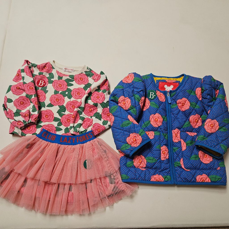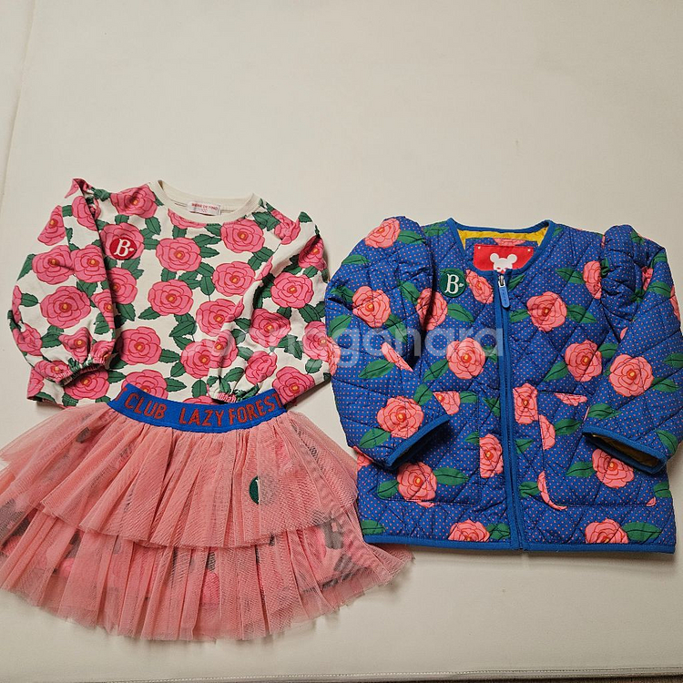 자켓은110사이즈이고 티셔츠는 100,치마s입니다 100사이즈 입힐때부터 지금까지 입혔어요 촌스러워 보이지만 입으면 이쁜옷이에요 자켓과 치마는 상태 괜찮고 티셔츠는 약간의 이염 보이나 자세히 봐야 보이는 이염 있어요(사용감있어요) cu반값택포입니다