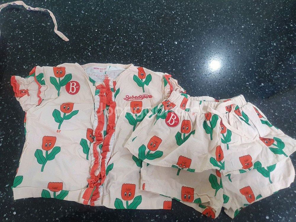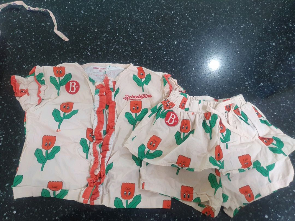 베베드피노 튤립무늬 상하복 90 사이즈 4번째 사진보시면 블라우스 왼쪽 후면쪽 미세하게 얼룩있는데 표백제 쓰시면 지워질듯 합니다만 확실치는 않아요 실제로보면 눈에 크게 띄지않습니다 여름에 입혀놓으면 색감화사해서 너무 이뻐요 택배비 별도