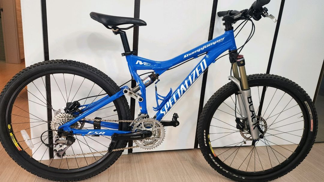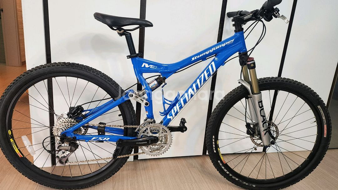 풀서스펜션 산악자전거입니다. 전체적으로 깔끔한 상태이며 디스크 브레이크와 서스펜션이 잘 작동합니다. 실내 보관으로 관리 상태 양호해요.
