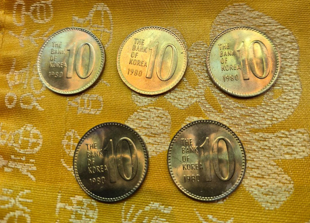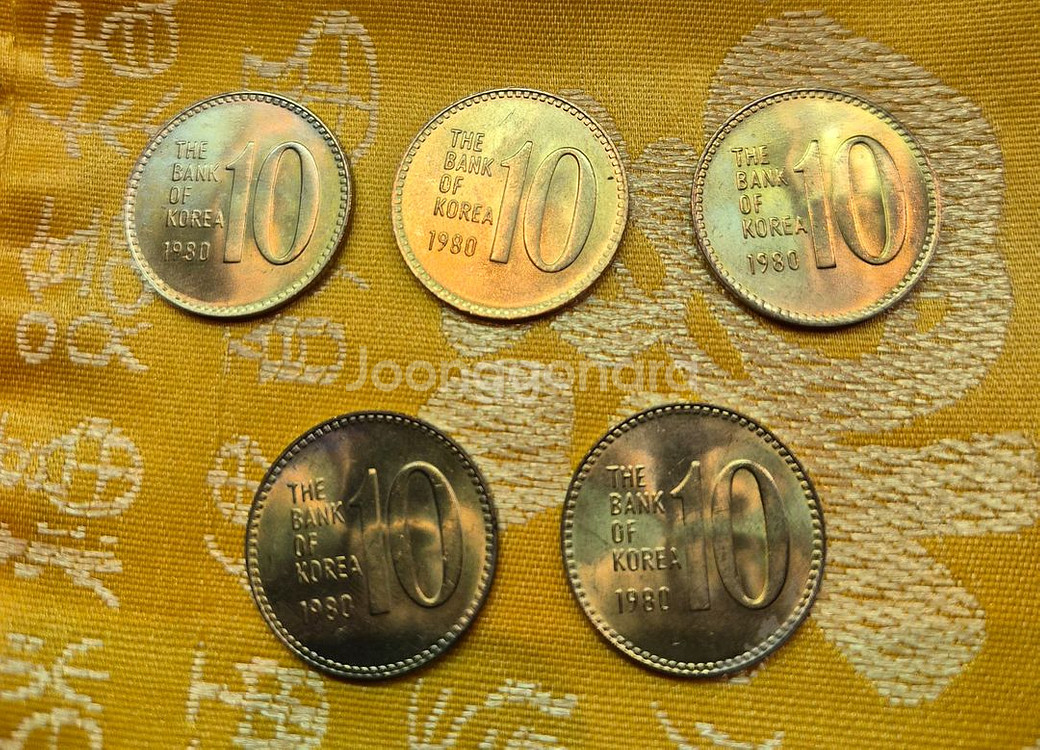 개인정보(거래정보)를 주고받는 행위는 사기에 노출될 수 있으므로 즉시 중고나라로 신고해 주세요1980년에 발행된 10원 동전 5개 세트입니다. 수집용으로 보관해 왔으며, 상태는 사진과 같습니다. 희귀한 연도이므로 소장 가치가 있습니다. 별도 문의 없으시면 바로 안전결제 부탁드려요!