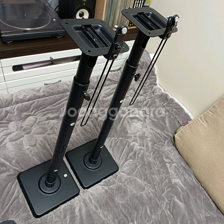 고급형 리어 스피커 스탠드 1조(2개)입니다. 저가형 스탠드와는 비교 안 될 정도로 묵직하고 안정적입니다. 쿠팡 판매가 13만 9천원 (현재도 판매 중인 모델) 상태: 기스나 흠집 없이 거의 새 제품 수준입니다. 장점: 고중량 지지: 묵직한 하판 덕분에 고가의 리어 스피커도 흔들림 없이 거치 가능합니다. 디테일한 높이 조절: 청취 높이에 맞춰 세밀하게 조절됩니다. 깔끔한 선 정리: 기둥 안쪽으로 케이블을 넣을 수 있어 인테리어 효과가 뛰어납니다. 저렴한 스탠드 사서 불안해하지 마시고, 제대로 된 제품 저렴하게 가져가세요. 직거래:일산동구 중산로260 택배:배송비 별도