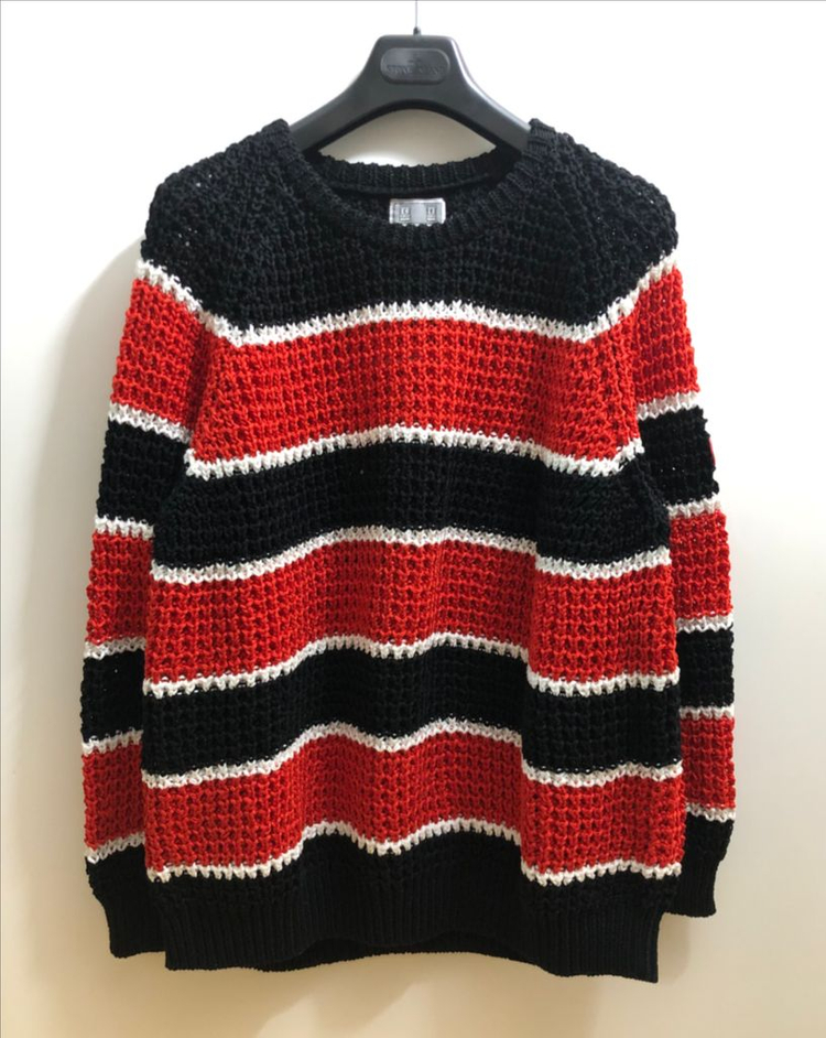 사이즈: L 어깨 (없음) 가슴 64 총장 74 소매 74 (넥라인부터 소매 끝까지의 길이) 카브엠트 18ss 루즈 와플 니트입니다. 당시 웍스아웃에서 60만원에 구매하였으며, 구멍, 찢어짐, 얼룩, 올 풀림 등 하자없이 상태 아주 좋습니다. 오버핏 제품이며, 100-105 분들에게 추천드립니다.