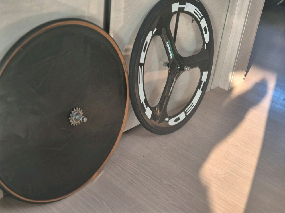 리어는 시트지 자작 디스크휠 입니다. 프론트는 카본 삼발이 입니다. 소비자가 50정도 되는 휠셋입니다. 교신 문의는 이득만 받겠습니다. 싸게 올리니까 빨리 사가세요