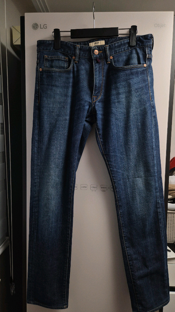 인코텍스 진청 데님입니다. 표기사이즈는 33인데 슬림핏이라 48 입으시는 분들께 추천드립니다. 실측은 허리42 총장 105입니다.
