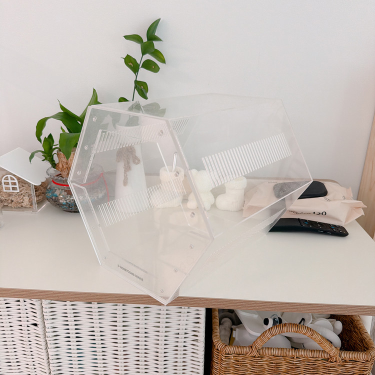 비룡컴퍼니 허니컴하우스 육각 투명 아크릴 사육장입니다 디럭스타입/ 롱 / 자석문 옵션으로 현재 13만원인 제품 크레나 소형 파충류나 곤충 키우기에 적합합니다 사용 안하고 계속 보관 중에 있어서 먼지가 있으니 가져 가셔서 잘 세척 해서 쓰셔야 됩니다 아크릴 제품 특성상 기스 같은 생활사용감 있을 수 있으니 예민하신 분은 연락 주지 마세요ㅠ 🙏예민 NO ✔️비대면문고리거래 🚫반품환불 불가 🏠경기도 시흥 거북섬