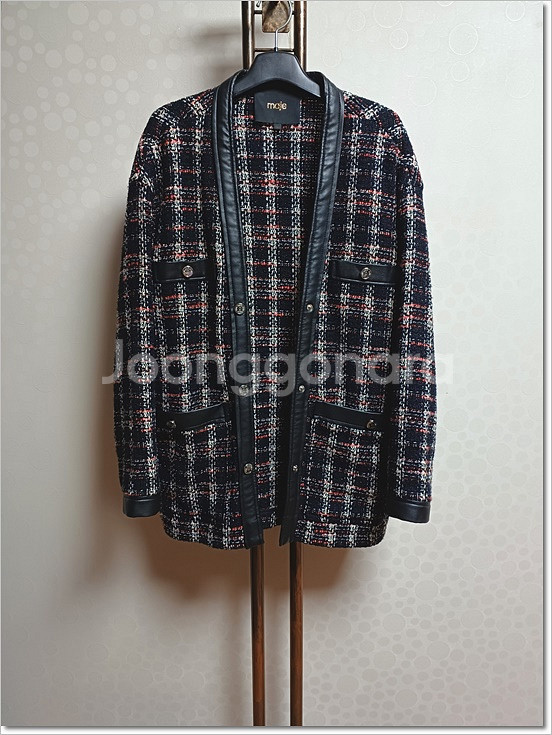 마쥬 트위드 자켓. 사이즈 38. 가슴반품 48, 기장 69. 기본 스타일로 다양한 옷에 잘 어울려서 캐주얼하게 포멀하게 입기 좋아요. 세련되고 고급스럽습니다. 흠 없고 상태 깨끗해요.