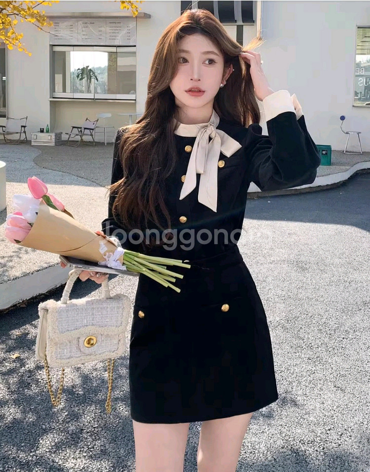 리본 타이 미니 투피스 새상품