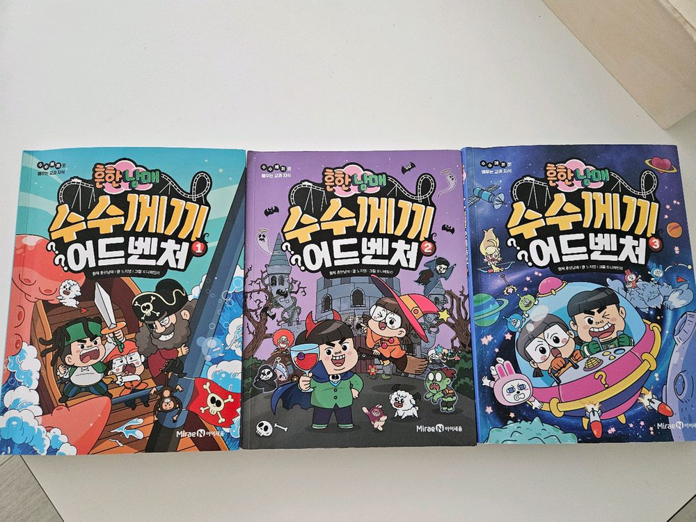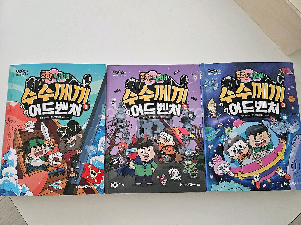 흔한남매 수수께끼 어드벤처 만화책 3권 세트예요. 한권 겉표지와 내부 테이핑 몇군데 있습니다. 사진 확인해주세요. 나머지2권은 책상태 양호합니다.