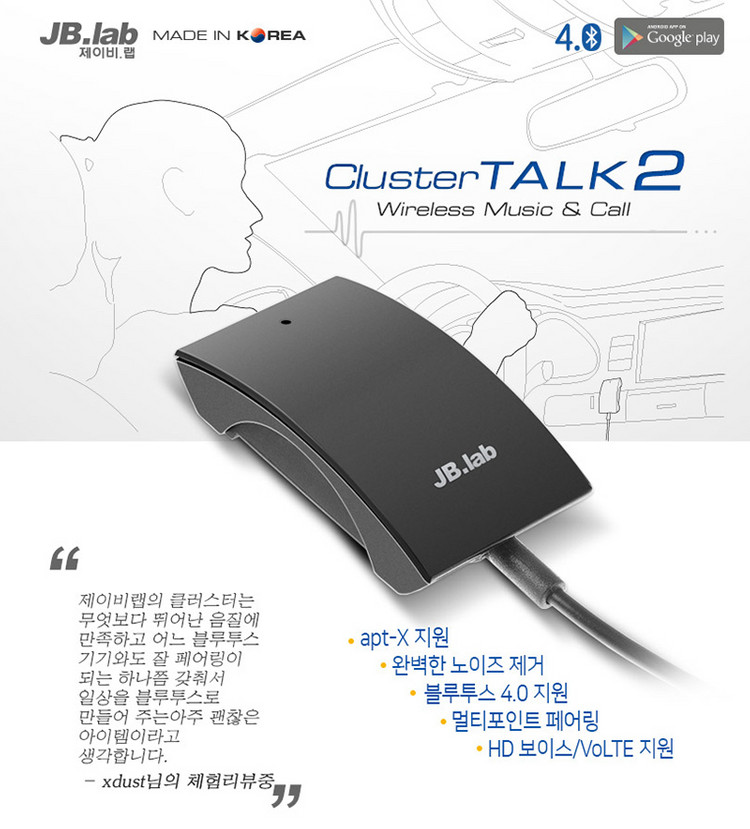 음악과 통화를 동시에 즐길 수 있는 무선 블루투스 기기예요. 차량에서 음악 감상하면서도 전화나 인터넷 사용할 수 있어서 정말 편리해요. 차량에 사용합니다