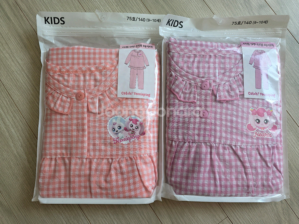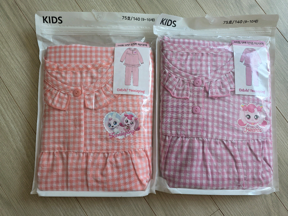 개인정보(거래정보)를 주고받는 행위는 사기에 노출될 수 있으므로 즉시 중고나라로 신고해 주세요귀여운 캐릭터가 있는 아동용 파자마 2벌 세트예요. 핑크 체크 패턴에 프릴 디테일이 사랑스럽고, 새 제품 상태로 깔끔해요.새상품이에요 일반택배, 반값택배 가능해요:)