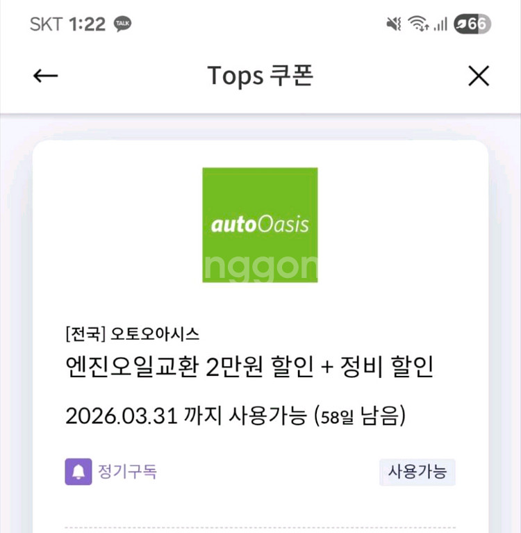 오토오아시스 엔진오일 2만 할인쿠폰
