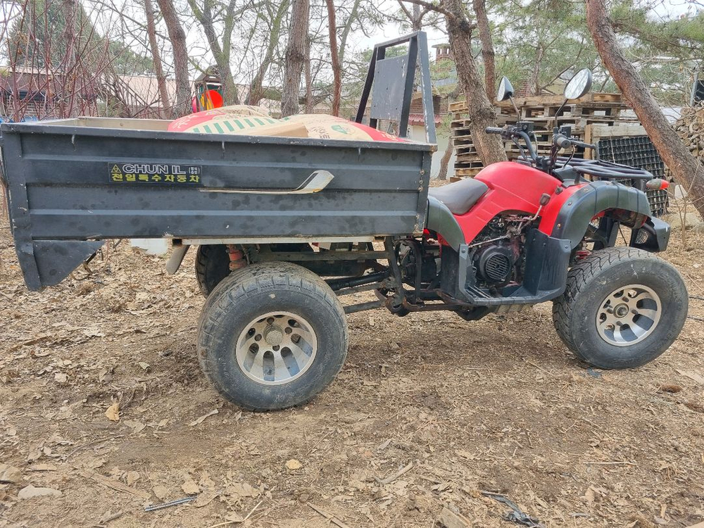 짐칸이 큰 사륜 오토바이입니다 짐칸이 있어서 짐을 싣고 다니기 편리합니다. 수동덤프 됩니다. 아래 설명있으니 읽어보시고 편하게 문의 주세요. (농사 및 짐나르기에 정말 편하고 좋습니다) 트럭 대용으로 밭일, 포대 나르는일 등 각정 작업에 사용하기 좋았습니다. 짐칸사이즈는 일반 사륜오토바이랑 다르게 더 큰 짐칸입니다. 따로 제작된 짐칸입니다. (짐칸 사이즈는 약 100cm x 120cm입니다.) 사진에서 200키로 짐을 싣고 있는데 거뜬히 잘달립니다. 영상도 찍어놨는데 못올려서 아쉽네요. 연락주시면 보내드릴게요. 농업용, 펜션에서 짐나르기 등으로 사용하기 좋습니다. 외부 사용감은 좀 있지만, 엔진상태가 아주 좋습니다. 네고나 배송협의는 많이 문의주세요 010 4구15 육이구육 강원도 철원군 거주입니다. 오셔서 가져가셔도 되고 서울 북부, 경기도권 배송가능합니다.