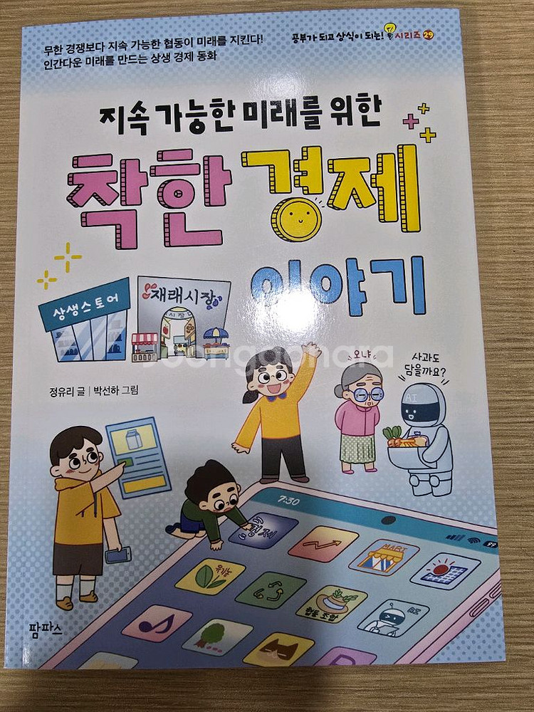 미래에 대한 지속가능한 생각을 배울 수 있는 경제 교육 도서예요. 아이들이 미래 사회에 관심 있게 읽을 수 있는 내용으로 구성되어 있어요. 상태 양호한 중고 도서입니다.