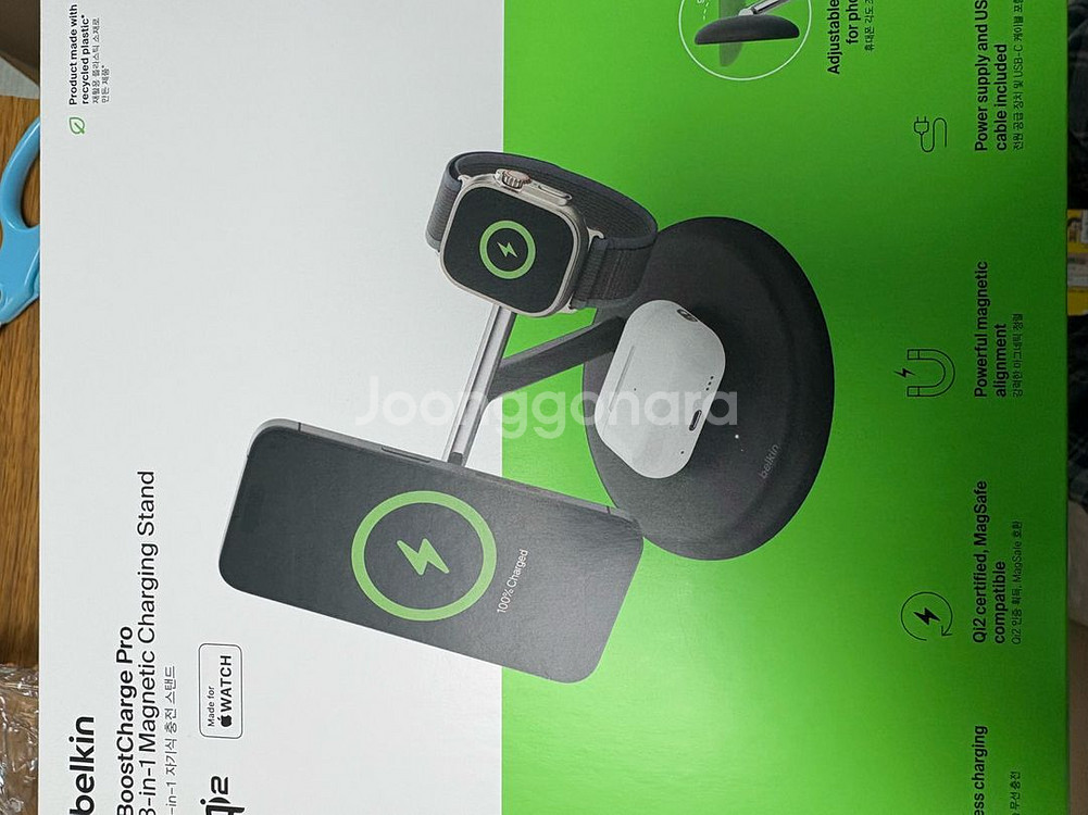 벨킨 BoostCharge Pro 3-in-1 자석 무선 충전 스탠드 새 제품입니다 - 박스에 담겨 있습니다 - 아이폰, 에어팟, 애플워치 동시에 충전 가능합니다 - 최대 15W의 고속 무선 충전을 지원하여 시간을 절약할 수 있습니다 - Qi2 인증을 받아 안전하게 무선 충전이 가능합니다 *어댑터없음 택배는 파손면책동의하에 보내드리며 입금후 취소환불 불가한점 이해부탁드립니다 일반택배 cu반값택배 전부가능 무게 거리따라 택배비용다름