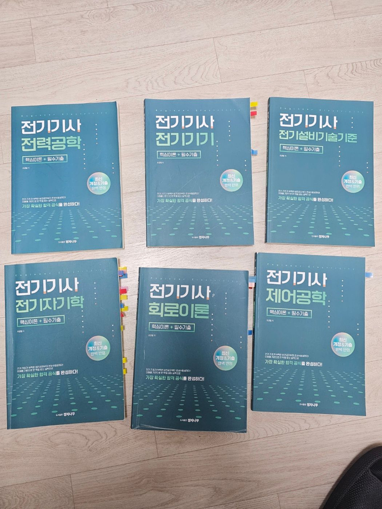 엔지니어랩 전기기사 시험 준비용 교재들이에요. 전력공학, 회로이론, 제어공학 등 기본 과목 교재와 실기 핵심이론 필수기술출 교재가 포함되어 있습니다. 사용감은 있지만 공부하기에는 문제없는 상태예요. 연필로 적은 곳이 조금 있고 사진으로 보이는 작은 포스트잇으로 페이지 체크만 해둔 겁니다. 싸게 내놓겠습니다. 가져가서 합격하십쇼~! 네고 가능합니다. 편히 채팅 주세요. 위치 말씀주시면 위치 고려 후 직거래도 가능합니다!!