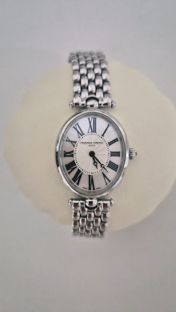 스위스 브랜드 Frederique Constant 여성용 클래식 아르데코 오벌 모델입니다. ✔ 모델 : FC-200MPW2V6B ✔ 스위스 메이드 ✔ 로마 숫자 다이얼 / 스틸 브레이슬릿 <구성품> 시계+정품 박스+보증서 및 설명서+여분 링크 2025년 5월에 약 55만원 들여 정비 및 수리 완료했습니다. 현재 컨디션 좋고, 바로 착용 가능합니다.