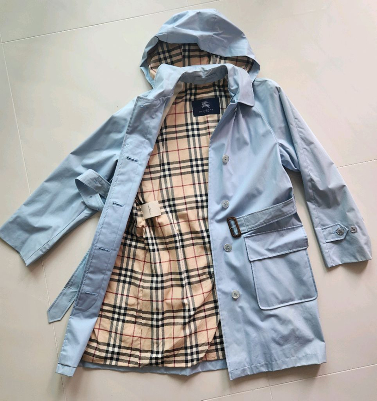 정품 버버리 후드 여성용 트렌치 코트 정품 버버리 바람막이 반코트 후드형 점퍼 입니다. 고급스러운 하늘색으로 세련돼 보여요. 미국 버버리 매장에서 구입한 정품입니다. 사 놓고 한번 잠깐 입어서 거의 새 컨디션 유지에요. 아깝지만 싸게 내놓아요. 실측 사이즈 가슴 50cm 총길이 91~92cm정도이고 66에서 77정도 될 것 같은데 실측 사이즈를 비교해서 구입 바랍니다. 택포 가격입니다. 🍁 교환 반품 어렵습니다 (신중구매부탁)