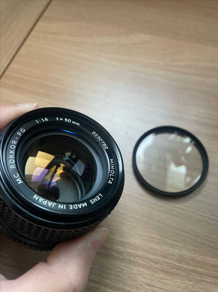 미놀타 50mm f1.4 수동렌즈 판매합니다 미놀타mc/md 마운트 겐코 블랙미스트 필터 포함해서 보내드립니다 렌즈 크리닝 흔족은 있구요 곰팡이는 없습니다 만족스러운 결괴물을 보여줘서 애지중지 잘 사용하던 렌즈입니다 직거래 경기도 안성에서 가능하고 택배거래 가능합니다