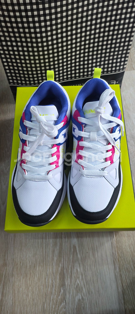 댄스용 운동화예요. 화이트 베이스에 핑크와 블루 포인트가 들어간 예쁜 디자인이에요. 상태 양호하고 댄스나 운동할 때 신기 좋을 것 같아요! 일반 운동화로 신어도 돼요