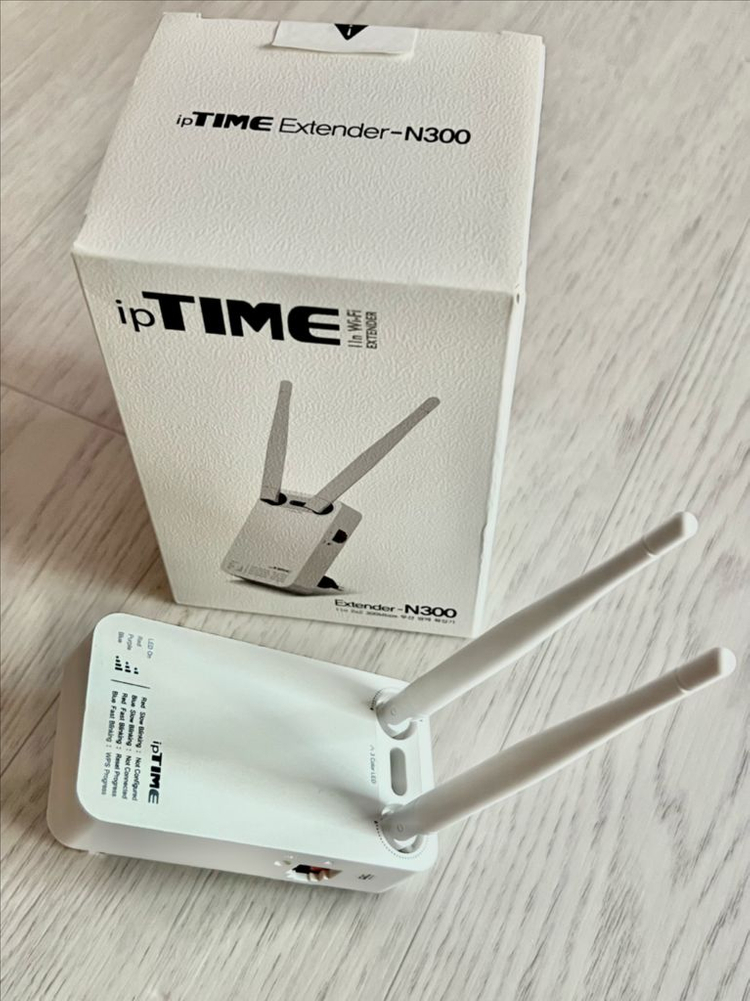 ipTIME Extender-N300 와이파이 증폭기 새상품입니다 - 11n 2Tx2R 무선랜을 지원하여 무선 거리를 확장할 수 있습니다 - 5dBi 고감도 안테나 2개로 무선 성능을 향상시켰습니다 박스에 원상태로 담겨 있습니다 집에같은게 두개있어서 새제품내놔요