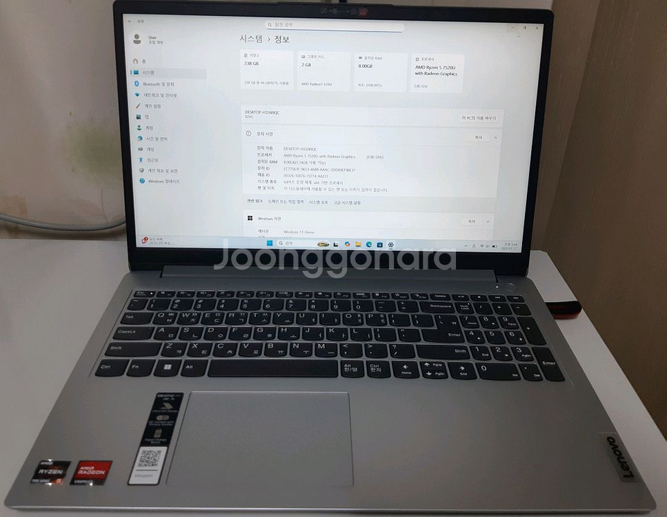 택배거래시 착불발송 및 파손면책동의 부탁드립니다 근무중에는 답장이 느릴수 있으며 퇴근이 늦은 날에는 8시 이후에 직거래 및 택배 접수 가능합니다 네고 답장 드리지 않습니다 Lenovo 아이디어패드 Slim1-15AMN7 R5 cpu Ryzen5 7520u ram 8g ssd 삼성NVME 256G 배터리 100프로 어댑터 포함 상판 작은 찍힘 제외하고 외관 상태 괜찮습니다(마지막사진) 실제 사용시간 짧고 배터리상태 좋으며 고장 없습니다 구입전 채팅 부탁드립니다