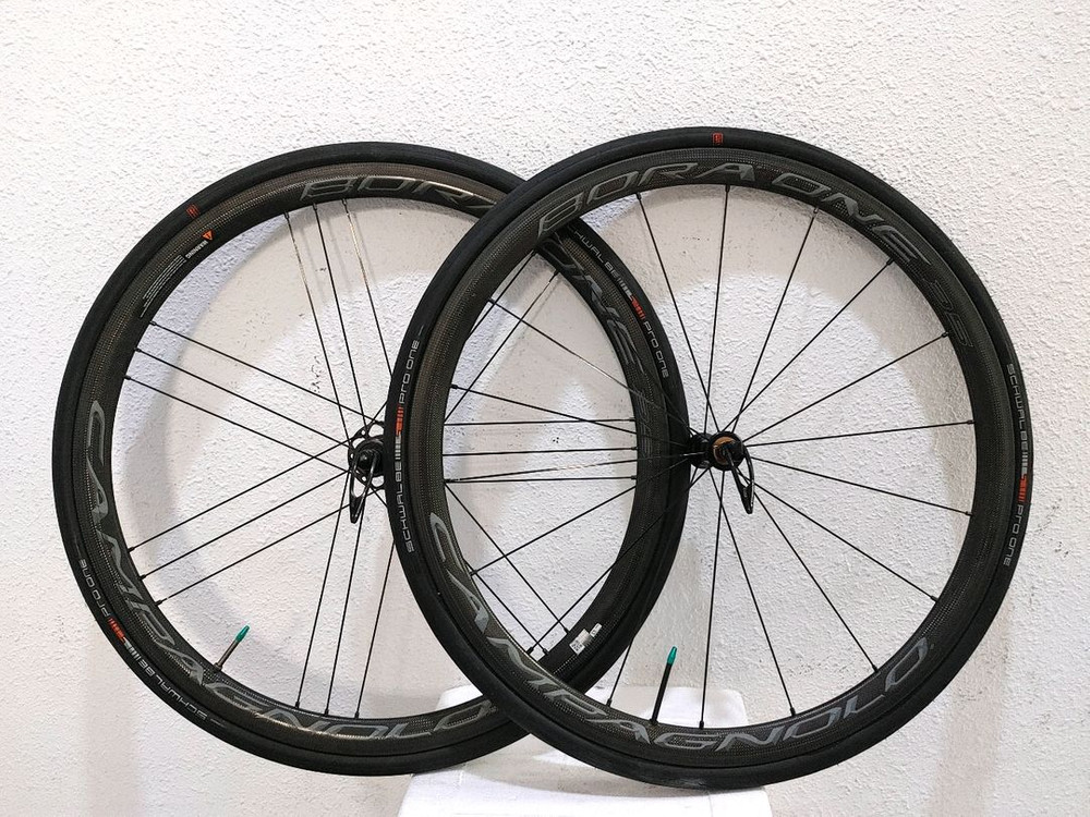 컨디션상]] 정품 캄파놀로 보라원 클린처 35 림브 카본휠셋 팝니다. (88만원) <컨디션상 / 시마노바디 / 정품 / 클린처 / 림브 > 신품가 250원 정도 하는것으로 알고 있습니다 너무나 유명한 최상급 카본 휠셋이죠. 잔자 구입하면서 받았던 휠셋입니다. 저는 기존에 다른 휠셋이 있어 점검차 잠시만 주행해보고 앞으로 사용할 일이 없을 것 같아 정리하려고 합니다. 그외 휠셋에 대해 최대한 자세하게 정보 올립니다. 내용과 사진 꼼꼼하게 확인해주시고 구매결정 해주시면 감사하겠습니다. 1. 물건 = 카본휠 + 큐알+타튜 1. 타이어는 상급 타이어 중에 하나인 슈발베 프로원 타이어 - 클린처 -25c 장착되어 있습니다. 70~~80퍼센트 정도 마일리지가 남은 것 같습니다. - 타이어 상태도 양호하기 때문에 교체없이 그대로 사용 가능합니다 1. 상태- 총 주행거리 -1300킬로 내외입니다. 전체적으로 상태 좋고 데칼 갈라짐 없습니다. 그 외 스톤칩이나 눈에 띄는 상처는 안보입니다. 잔기스들만 있네요 브레이크 라인 사진과 같이 매우 깨끗합니다. . 크렉이나 열변형은 당연히 없습니다. 림정열 문제 없습니다. 따로 정비 받으실 필요 없으시구요. 1. 거래 - 직거래 최선호 합니다. 직접 오셔서 눈으로 확인하셨으면 좋겠습니다. (서울) 직거래가 어려우신 분은 택배거래 가능합니다. 휠 전용 박스가 있어서 꼼꼼하게 포장하여 발송해 드릴게요. 택배 거래시 중고 물건 특성상 교환 환불이 불가합니다. 양해 부탁드릴게요 여타 판매자와 다르게 사진을 앞뒤 상하 좌우 빠지는 부분 없이 찍어 올립니다. 꼼꼼하게 확대해보시고 연락주시면 감사하겠습니다. 네고는 죄송합니다. 급하게 파는 것이 아니라서요. 좋은 분 기다립니다 연락주세요.