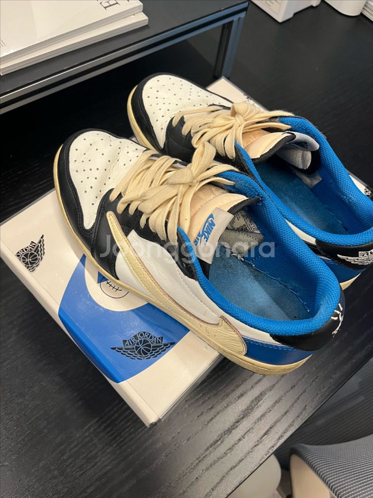 개인정보(거래정보)를 주고받는 행위는 사기에 노출될 수 있으므로 즉시 중고나라로 신고해 주세요나이키 에어 조던1 트래비스 스캇 프라그먼트 로우 판매합니다 박스 있고 사이즈 265입니다 생활감 좀 있습니다 10번 정도 신은것 같은데 저한테 안어울려서 신발장에 있다가 판매합니다