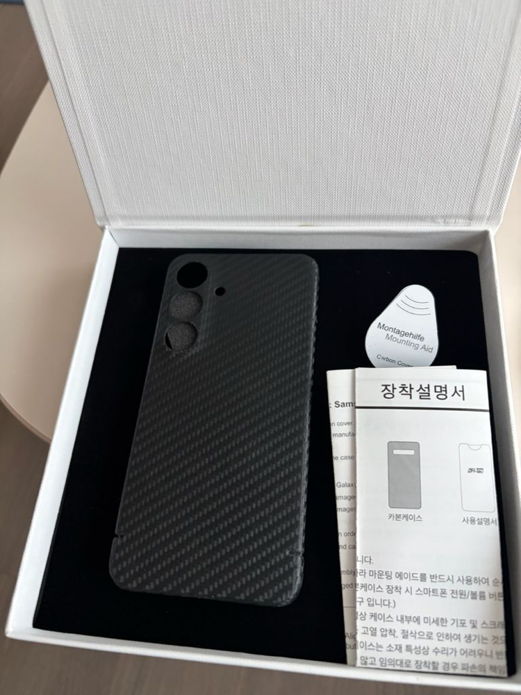 카본파이버 패턴의 스마트폰 케이스예요. 박스와 설명서가 포함되어 있고 상태 양호합니다. 고급스러운 카본 소재로 제작된 제품이에요. 직거래 일산역 가능합니다 전체적으로 깨끗합니다
