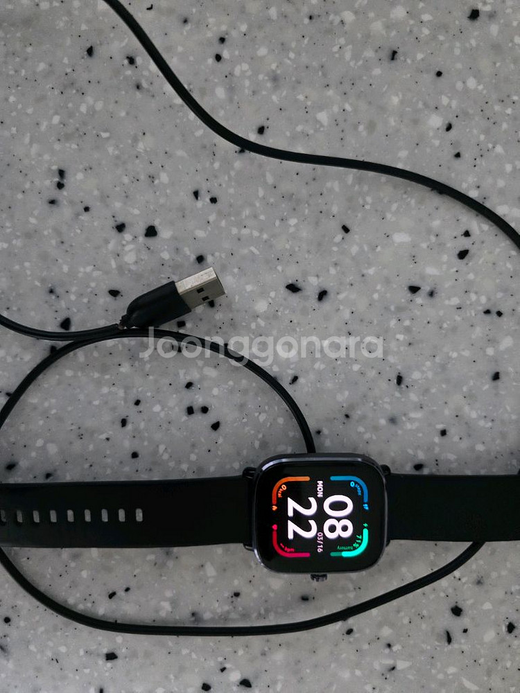 검은색 스마트워치입니다 충전 케이블 같이 드립니다 제가 봤을때 겉보기에 크게 티나는 부분은 없습니다. 사용안한지는 꽤 됐는데 구버전이라 신형보다 배터리 효율이 떨어진건 어쩔 수 없을듯합니다. 그리고 다시보니 충전은 정상적으로 되는데 충전케이블 끝 부분 피복이 다소 벗겨져있네요. 사진 추가 첨부했습니다