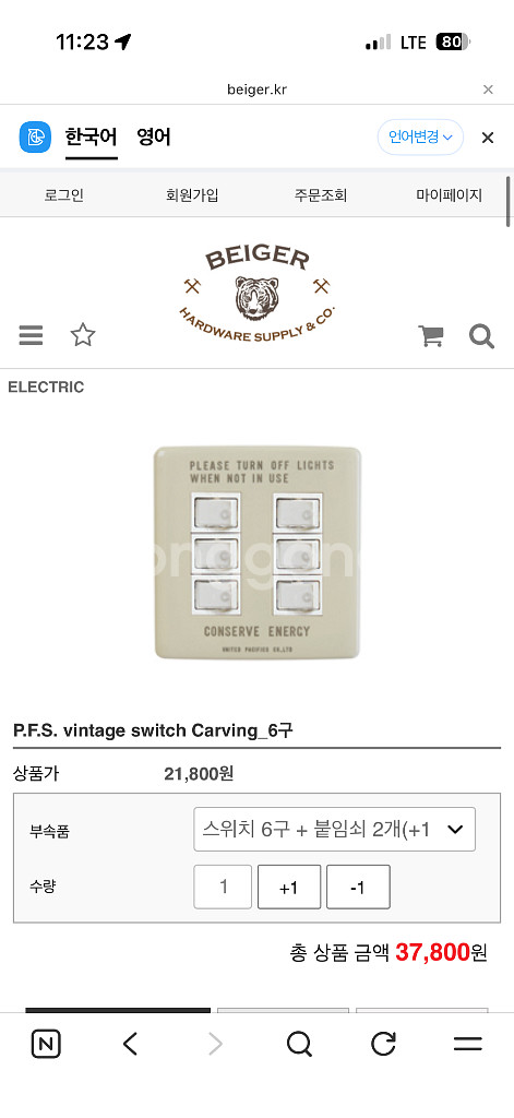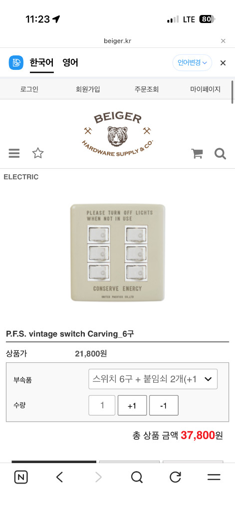 Beiger의 빈티지 스위치 커버입니다 - 에너지 절약을 위한 문구가 디자인되어 있습니다 - 일본 P.F.S사에서 제작된 오리지널 스위치 플레이트입니다 - 사이즈는 W70 x D5 x H120 mm입니다 -2구는 아이보리/그레이 색상 2개있고 1구는 아이보리1개있어요. -아이보리 1구 2구는 일본에서도품절입니다. 셀프인테리어하면서 초과주문해서 새거 남았어요. 여러개 같이주문하시면 에누리해드릴게요. https://www.beiger.kr/m/product.html?branduid=10310244&xcode=006&mcode=000&scode=&type=P&sort=manual&cur_code=006&search=&GfDT=aGh3Uw%3D%3D